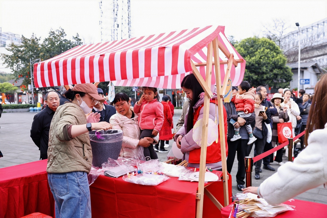 除了精彩的文艺演出,活动现场还设置了非遗漆扇、糖葫芦、糖画和元宵汤圆摊位,非遗传承人现场展示技艺,市民们一边品尝香甜的汤圆、糖葫芦和糖画,一边体验手工漆扇制作,沉浸式感受非遗文化与元宵民俗的融合之美。“在家门口就能看到这么多地道的非遗表演,还能体验手工非遗项目,吃一碗热乎的汤圆,这个元宵节过得太有意义了!”市民冯阿姨手里拿着刚做好的糖画,脸上满是笑意。