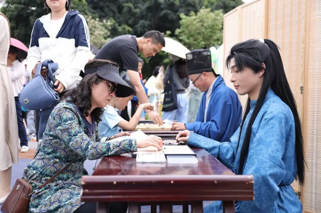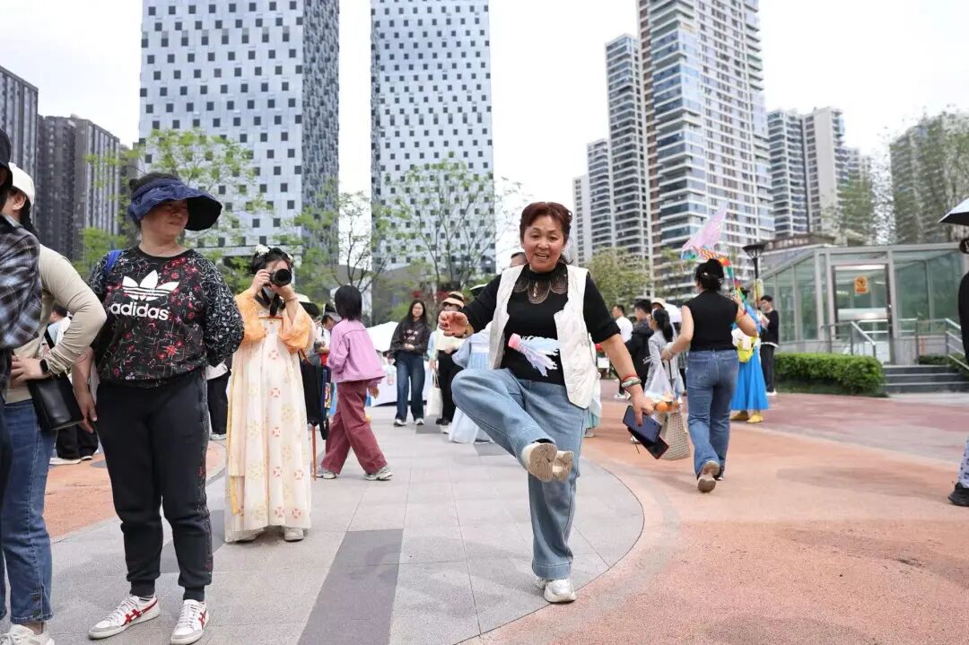 游戏互动打卡区更是热闹纷呈,成为市民共享欢乐的天地。女声独唱《清明雨上》温柔婉转,情景诗朗诵《清明赋》饱含深情,经典诗词的韵律在广场上空回荡;古筝、琵琶、笛子合奏的经典乐曲轮番上演,古风旋律让现场氛围感拉满。诗词互动环节,大家以诗会友,共话清明,在趣味互动中重温经典诗词之美。此外,巨型筛子、踢毽子、有奖知识竞猜等趣味小游戏吸引市民游客踊跃参与,大家与汉服NPC欢乐互动,完成任务后收获春日小礼品。