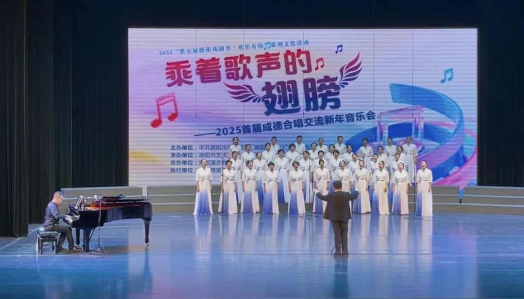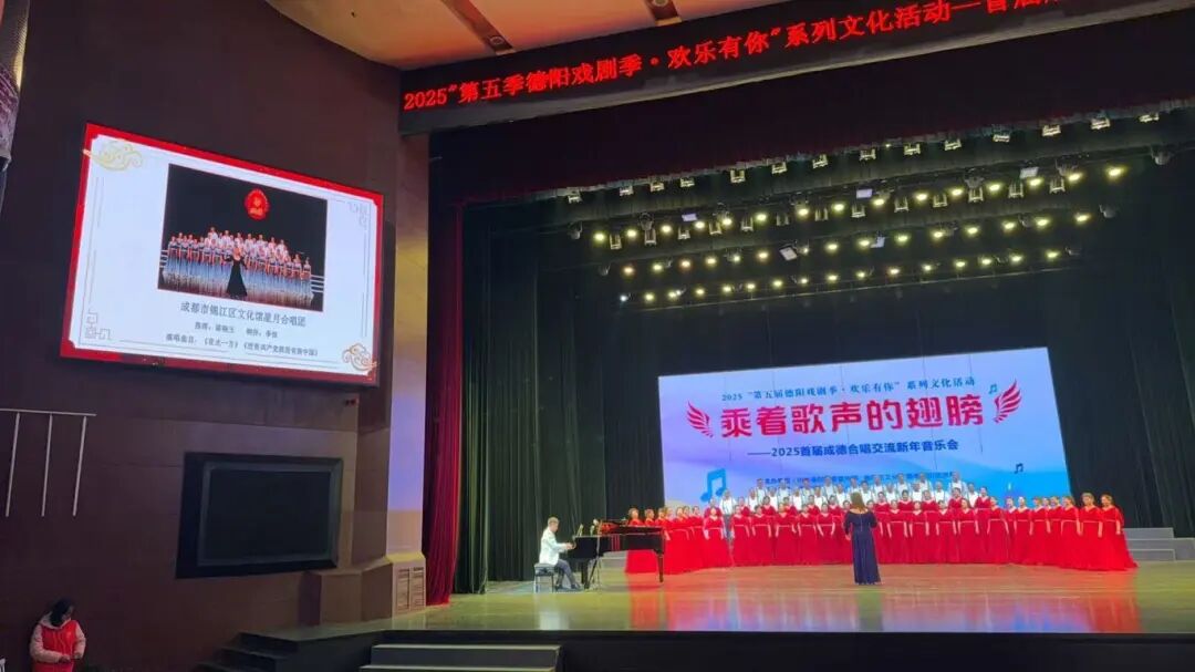 12月21日晚,2025“第五届德阳戏剧季·欢乐有你”系列文化活动“乘着歌声的翅膀”——2025首届成德合唱交流新年音乐会在德阳艺术宫圆满举行,锦江区文化馆星月合唱团、锦江区文化馆玫影合唱团受邀参加了本次活动。